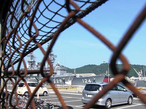 まず走行中に目に留まったのが自衛隊桟橋である。正門の自衛官に訊ねると今日は見学が出来ないとか・・・今、二隻停泊している船は何か訊ねると護衛艦とか言っていた。