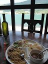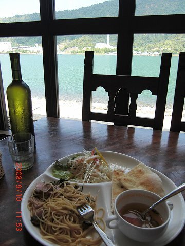 ランチパスタ、ベーコン・ナスを注文。直ぐ横に海辺があったので覗いてみるとボラが跳ねていたので20分ほどミノーでキャストしたが全然アタリなし。