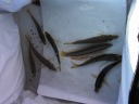 テトラの間をボラが沢山回遊していた。 |