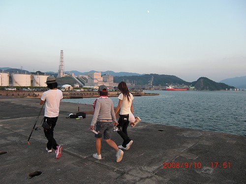釣り場は先ほどの釣具屋で聞いた敦賀新港(フェリー乗り場)。現地まで行くとサクを乗越えて沢山の釣り人が竿を出していた。この釣り場は水深が10メーターほどありアタリがひらいにくいとは聞いていたが数投目にアタリが出た。その後1〜2回でたが得体は知れない。その後20時まで竿を出したがそれ以降アタリは無かった。