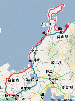 (大阪⇒敦賀(舞鶴経由)⇒能登半島⇒富山⇒大阪)