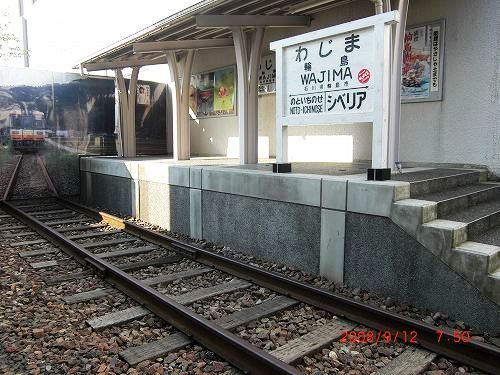 | 9月12日(3日目) 今朝7時ごろホテルで目を覚まし朝食前に道の駅周辺を散策。フロントで聞くとこの道の駅は13年前までJR輪島駅だったそうだ。利用者が少ない為廃止。その名残が道の駅内にあるというので輪島駅のホームを撮影に行く。 散策後ホテルに戻り朝食を頂く。思ったより立派な食堂と朝食であった。 8時40分頃ホテル出発、 街中には輪島塗りなどの商店が並んでいる。まず朝市を見学(バイクで5分)有料駐車場があったがバイクは無料。朝市は乾物、箸やおわん等々の漆塗り、カニや魚の海産物店が軒を並べていた。