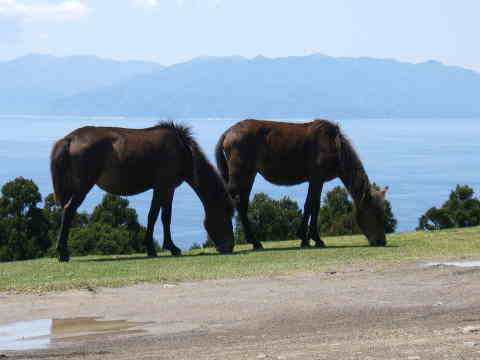 都井岬は注意しないと道路に馬が飛び出してくる。
