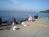朝6時頃に目を覚まして露天風呂に入る。海辺を眺めていると波止場で釣りをしている人が見える。どうしても気になるので風呂からあがり徒歩で5分ほど行ったところにある波止場に行ってみた。5〜6人の人が黒鯛(チヌ)釣りをしていた。仕掛けを見ると釣針を4本つけて団子に絡ませ遠投していた。関西の団子釣りは針一本だが少し仕掛けが違う。私ももう一泊してこの波止場で釣りをしようかとも考えたが釣り方が違うので遠慮することにした。遠慮した理由はもう一つある。竿を出すスペースが狭いのと片隅で一人で釣りをしていた人に色々話を聞くと、この場所でフカセ釣りは禁物だとか、どこの釣り場にも常連さんが決めた釣り方があって結構煩いのだ。