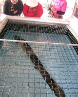 次に目に入ったのが「世界一うなぎ」の看板である。側まで行き水槽を覗いてみると1メーター以上はありそうな大きなうなぎで天然記念物に指定されているとか。平成二年に秋篠宮殿下と紀子様もご見学されているらしい。もう一つの看板にはネス湖のネッシーならずイッシーの説明書きがあった。