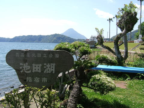 ![]() 池田湖(奥の尖がった山が開聞岳) |