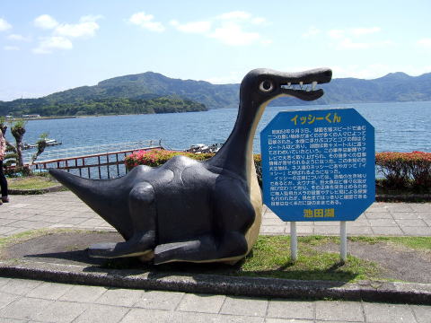 最初に向ったのが池田湖だった。売店が立ち並び向かいに池田湖があった。駐車場も池田湖の脇にあり駐車はしやすかった。バイクを駐車さすと同時に大型トラックが直ぐ側に駐車した。トラックのドアが開くとバイクに触れそうなほど接近しての停車だ。降りてきたのは女性で私のバイクのことを話しかけてきた。話を聞くと、このトラックは教習場のトラックで、仮免許で路上運転中だったようだ。気さくに話しかけてくる娘さんで大型バイクの免許も同時に受けているとか言っていた。