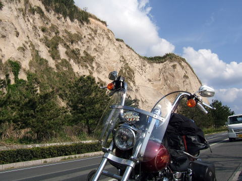 国民保養センター「江口浜荘」に宿泊先が決まった。このそば屋から2時間チョイ走れば着く。向う途中左側は海で右側に岩盤の岩肌が見える景色の素晴らしい車道が有った。再び停車させカメラに収めた。観光地も去ることながら走行中にバイクを止めて撮影したくなるような風景に出くわすことが本当に多いが、殆ど通り過ぎてしまうのが残念である。