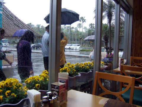 ![]() 大矢野物産館さんぱーるで昼食、雨はますます本降りになってきた。 |