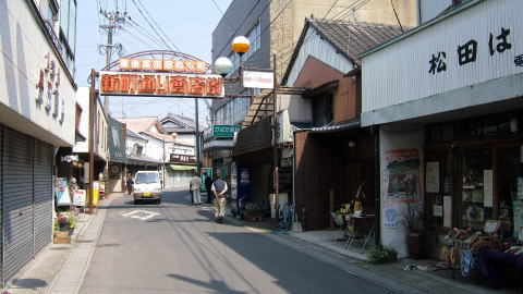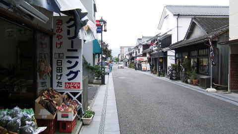 ここから5分ほど走ったところに日田の里があった。暮しを彩る生活の道具を揃えたお店.や落ち着いた木製品の器や下駄、布製品.など色々な情緒ある製品が立ち並ぶ通りだ。この辺りに岩尾薬局があると聞いたので下駄屋さんにバイクを停車させて訊くと隣の路地を入ったところにあると教えてくれた。