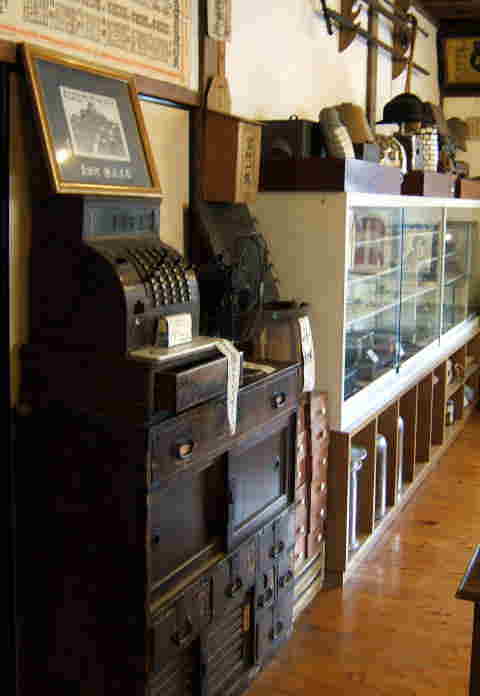 ![]() 岩尾薬局(1階が江戸、2階が明治、3階が大正と時代ごとに建て増しされた建物である) |