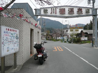 10分ほど走ると説明にあった「道の駅きくがわ」の看板が目に付いた。この看板を左折し15分ほど走ったところに有るというので山沿いを走らせたが思った以上に時間が掛かったような気がしたが道は間違っていなくやっと川棚温泉の入り口にこぎ着けた。 |