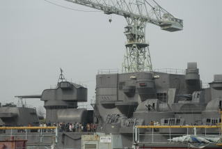 早朝から沢山の観光客が見学に来ていた。 造船所内のシャトルバスに乗り換えて5分程度の場所に実物大のロケセット戦艦大和が設置されていた。 順路に従って見学をしたが余り見るとこはなく30分程度で通り抜けてしまった。 |