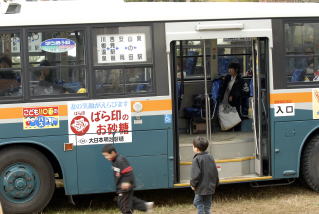 ![]() 全国79チームの参加者達は近くの温泉に散らばり宿泊したそうだ。又比較的近くからの参加者はローカルバスを貸しきって参加者達の休憩場所にしていた。 |