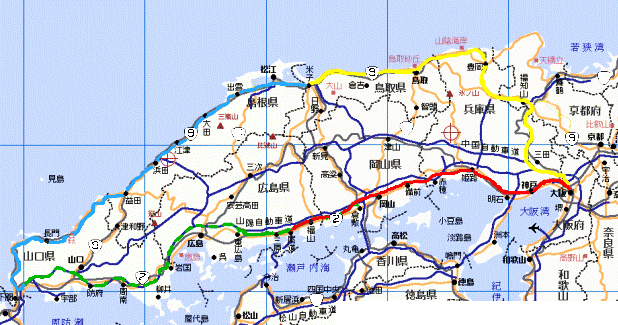 2006年3月31日〜4月4日(5日間) 走行中の天候 曇り時々晴れ 大阪市内から兵庫県・岡山県・広島県・山口県・島根県・鳥取県・兵庫北部・大阪市内(太字は宿泊先) 最終目標は日本一周だが大阪より西側は既に四国・淡路・沖縄本島は一周している。後は中国地方と九州一周が残っている。九州は5月に予定しているので近々中国地方一周を果たそうと考えていた。それが前日思い立ち翌日出発するという無計画なスタートとなった。 所持品は前回の四国一周所持品記録が参考になったので取り揃えるのは早かった。 ★今回全国に設置されている「道の駅」が結構役に立った。